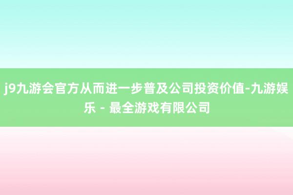 j9九游会官方从而进一步普及公司投资价值-九游娱乐 - 最全游戏有限公司