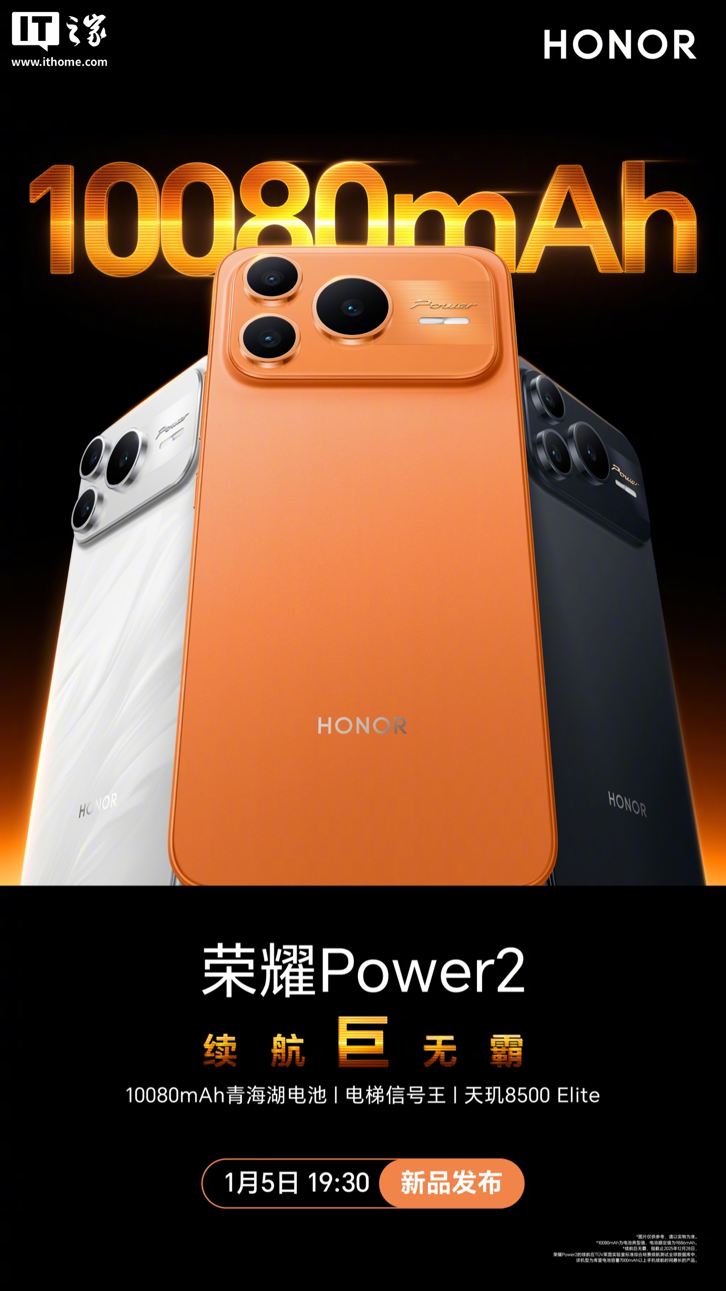 参考IT之家此前报说念来看,荣耀将在 1 月 5 日 19:30 举行新品发布会,已详情将带来 10080mAh 青海湖电板的荣耀 Power2 手机、配备 11.5 英寸 2.5K 护眼屏的荣耀平板 X10 Pro 等。