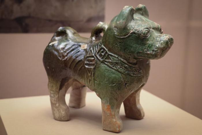 汉代绿釉陶狗。